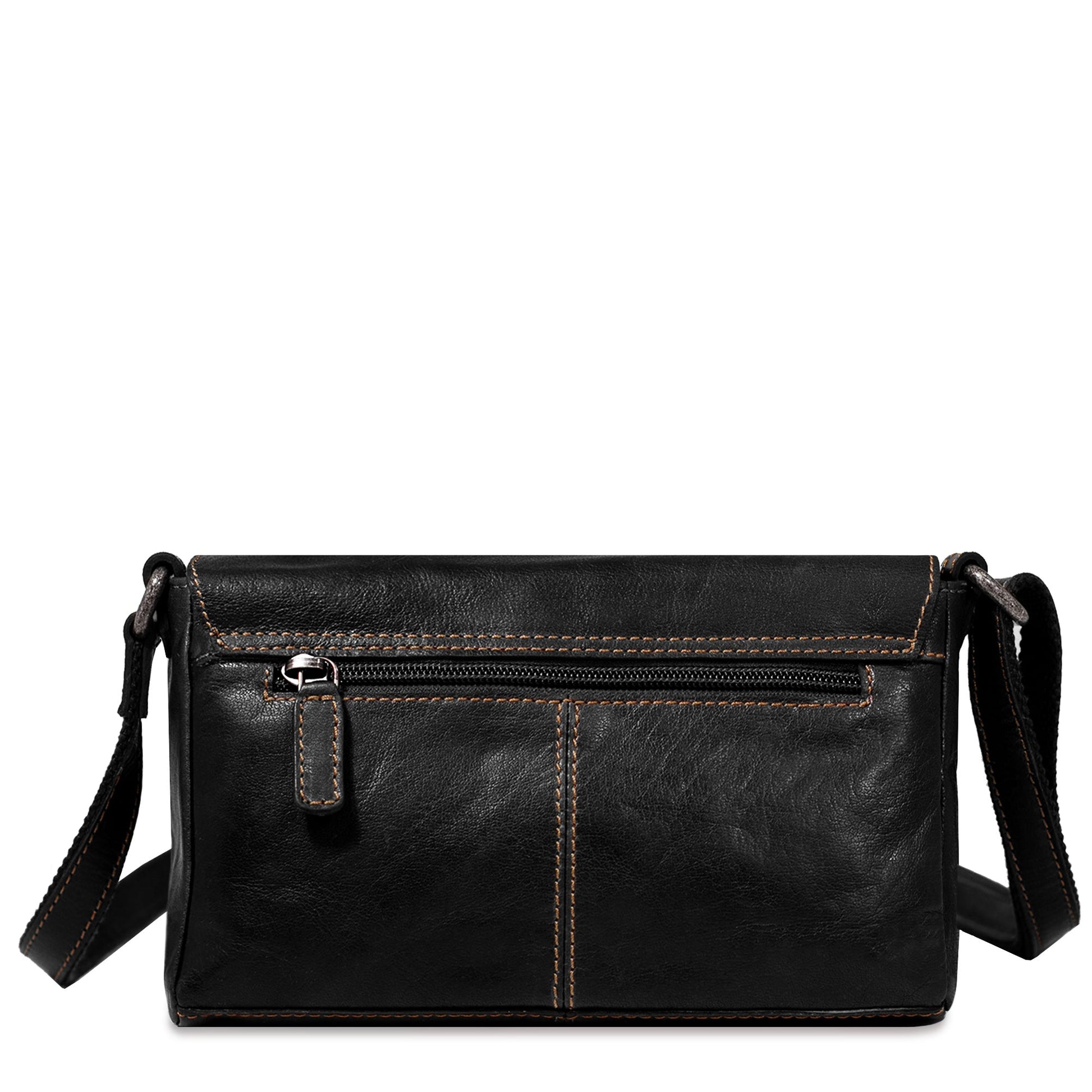Keep your hands-free and your must-have items secured inside this petite leather crossbody handbag. The Voyager Emma Crossbody Bag is made from hand-stained buffalo leather that builds a rich patina as it ages. The smaller sister to our , it has multiple storage pockets to keep you organized. The bag has a flap-over with magnetic closure. Its interior compartment has six credit card slots and a slip pocket for a mobile phone or receipts. The zippered back pocket can hold your ID, membership cards, and driver's license while the interior zippered compartment will hold your loose change, keys, or other items that you need to be secured. An adjustable shoulder strap allows the bag to be worn on your shoulder or as a hands-free cross body across your chest. The bag features: